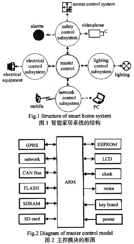 远程控制系统子系统,满足家庭网络和公共网络的联网控制功能。孤立的家庭网络使智能家居大打折扣,而和GPRS(General Packet Radio Service)网络和Internet互联,又使智能家居别样精彩。