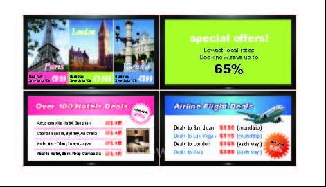 PowerDigiS软件同时还支持内容跨屏,支持图片墙功能,能让剧照或图片扩大到2个或4个显示器。PowerDigiS的多台TV屏幕显示特点让广告客户可以轻易的创建促销大屏幕,特别的图片墙效果。