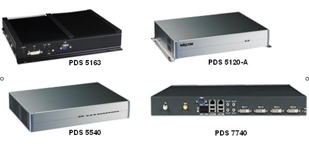 PDS 5000系列是采用AMD CPU的高性能的数字告示专用方案,支持4个独立的,分辨率可达720p的视频显示。PDS 5120-A是基于低成本的Intel Atom开发的全高清视频数字告示专用方案。PDS 5163采用Intel Core 2 Duo CPU,是功能强大的DVI,HDMI或CRT输出的双独立全高清显示。PDS 5540/PDS 5541 可以显示多种格式,如电影,剧照和动画图片,网页,票务信息等独立的4个视频输出和音频。