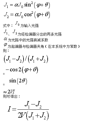 法拉第磁光效应:如果通过一次导线的电流为i,导线周围所产生的磁场强度为H,当一束线偏阵光通过该磁场时,线偏阵光的偏振角度会发生偏振,其偏振角θ的计算公式为:
