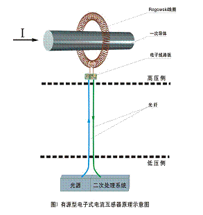 有源型电子式电流互感器特点是一次传感器为空心线圈,高压侧电子器件需要由电源|稳压器供电方能工作。其原理如下图所示: