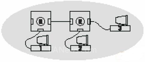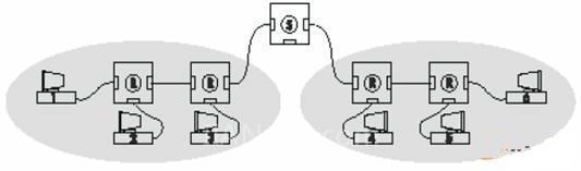 图2 共享型以太网中的所有设备和联线必须在一个碰撞域中