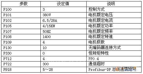 MASTERDRIVES 6SE70变频器部分参数设置如下: