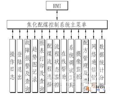 流程监控与操作界面─实现生产过程中各设备的顺序逻辑控制和系统协同操作运行,根据系统工艺流程的需求来确定运行方式、选择流程控制模式和相应配方。系统操作根据控制方式可分为手动、半自动和全自动,根据操作地点可分为现场就地操作、控制室操作、上位HMI集中操作,从而覆盖整个焦化配煤的工艺要求。