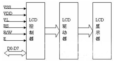 在实际应用中,用户很少直接设计LCD显示器驱动接口,一般是直接使用专用的LCD显示驱动器和LCD显示模块。其中,LCD显示模块LCM(Liquid Crystal Display Module)是把LCD显示器、背景光源、线路板和驱动集成电路等部件构成一个整体,作为一个独立的部件使用,具有功能较强、易于控制、接口简单等优点,在单片机系统中应用较多。其内部结构如图2-8所示。LCD显示模块只留一个接口与外部通信。显示模块通过这个接口接收显示命令和数据,并按指令和数据的要求进行显示。外部电路通过这个接口读出显示模块的工作状态和显示数据。LCD显示模块一般带有内部显示RAM和字符发生器,只要输入ASCII码就可以进行显示。LCD显示模块按功能显示可分为:LCD段式显示模块、LCD字符型显示模块、LCD图形显示块三类。