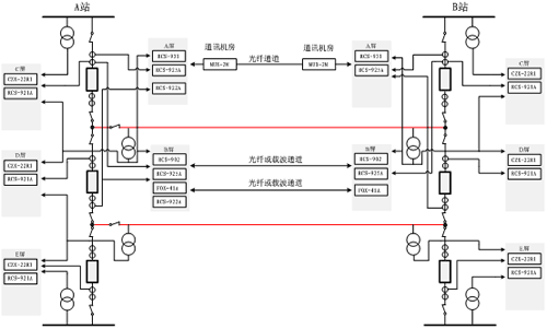 两套线路保护双重化:一套为RCS-931,实现光纤纵差保护,另一套为RCS-902,实现纵联距离保护;