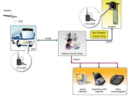 研华联合台湾某供商商迅速为客户提供了“台北市公交车动态信息系统”。该系统共包括四个部份,包括公交车上的车载设备、智能型站牌、中控中心与网页,系统运作方式是从内建GPS与GPRS的车载设备上,将公交车位置发送到中控中心,中控中心再计算出公交车到站时间,将讯息传往智能站牌,此外乘客也可用计算机、PDA、手机等设备连上中控中心网页,查询公交车到站时间与路线。