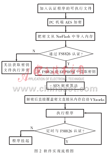 以上所述的加解密和认证过程将运行在嵌入式实时操作系统的启动和监测上,实现上以Vxworks为例,该系统为风河系统公司(Wind River System)在业界最早推出的一款嵌入式实时多任务操作系统,开发环境为Tornado。