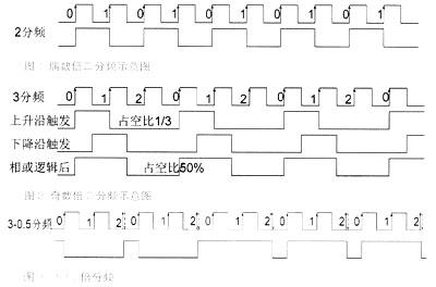 采用VHDL语言可以实现计数器的下降沿触发翻转,并且CPLD/FPGA具有可并行执行的特性,可以保证两种不同的触发翻转以及分频时钟输出保持同步,所以上述分频方法可以基于CPLD/FPGA予以实现。