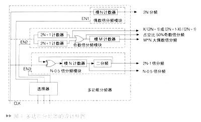 分别设计一个分频值为N和分频值N+1的整数分频器,采用脉冲计数来控制单位时间内两个分频器出现的次数,从而获得所需要的小数分频值。可以采取如下方法来计算个子出现的频率:
