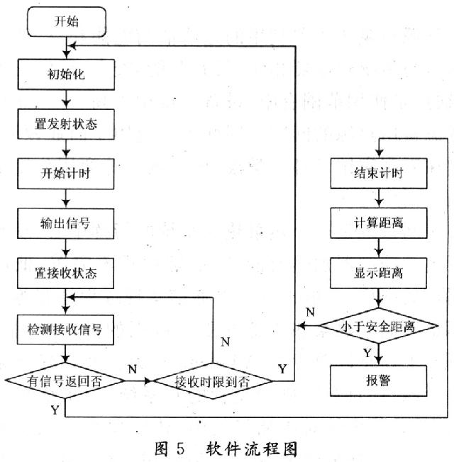 系统通电后,主程序完成初始化工作,包括存器置初值等。当汽车处于工作状态时,安置在汽车前后的报警装置会采集现场信号,传送给SB5027单片机。单片机接收的信号进行处理、运算、比较,正常时,报警器不报警;如果与下限比较产生了越限,则产生声光报警信号,提醒驾驶员采取相应措施。3 结 语