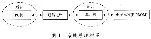 系统主要由四部分组成:后台计算机(上位机)、通信电路、前台单片机(下位机)和存储器(电子标签),见图1。其工作流程为: