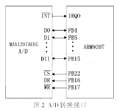 A/D转换单元采用MAX1297AEEG实现12位并行模数转换,直接与核心板的I/O线连接,如图2所示。由于S3C2440自带有LCD控制器,所以免去了LCD控制器的设计,显示屏采用NEC公司的3.5寸的压电式触摸LCD,分辨率为240×320。以太网接口采用TC3097F-5芯片。