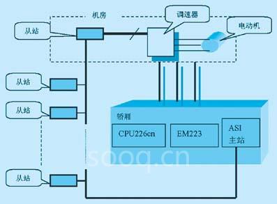 将井道和机房的信号通过AS-I从站连入电梯控制系统,因此,AS-I从站被分散安装在井道中和机房内,负责处理召唤盒内信号和控制调速器。