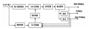 多功能电源集成了焊接、焊割、充电、起动、稳压供电五种供电功能。电源控制系统主要由功率主电路、DSP控制回路以及其他辅助电路组成。系统原理图如图1所示。