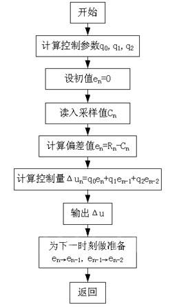 该系统软件设计采用增量式PID控制算法,根据采样时刻的偏差值计算控制量。采样电路将电压电流信号采集滤波后输入到DSP,经与输入值相比较后进行数字PID运算,从而实现对输出控制量的调节。增量式PID控制算法流程如图8所示。