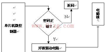 通过单片机送给开锁执行机构,电路驱动电磁锁吸合,从而达到开锁的目的。其原理如图2-1所示。