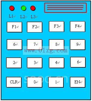 上面的3个指示灯L1、L2、L3是用来指示操作的状态:L1锁定及输入指示状态灯,正常的情况下显示红色,当键盘动作的时候,L1灯开始闪动,当键盘处于锁定状态时,指示灯也显示红色。L2开门指示灯,当用户在规定的时间内正确的输入了密码,此灯转变为绿色,表示开门,否则不显示。L3是管理员状态指示灯,当按下F1后,指示灯自动点亮。