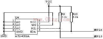 图中R8、R10是上拉电阻,其作用是减少AT24C02的静态功耗,由于AT24C02的数据线和地址线是复用的,采用串口的方式传送数据,所以只用两根线SCL(移位脉冲)和SDA(数据/地址)与单片机传送数据。
