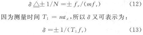 式中:△fx,△fr,△N为绝对误差。相对误差δ=±(△fx/fx),由于fr由晶体振荡器输出,其稳定度较高,所以△fr非常小,可忽略不计。△N极限是±1,故测量误差δ为: