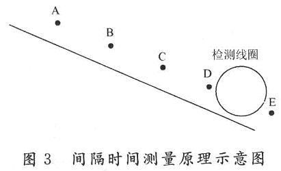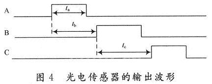 图3为基于FPGA的间隔时间测量原理示意图,A,B,C三点为光电检测点。当硬币通过光电检测点时,光电检测电路的输出由低电平跳变为高电平。图4为硬币通过币道时A,B,C三个光电传感器的输出波形。