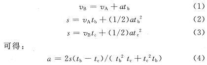 硬币通过币道时做匀加速度运动,设加速度为a,下面通过由FPGA高速检测得到的ta,tb,tc以及光电传感器之间的距离s来求加速度a,并求出硬币的直径d。