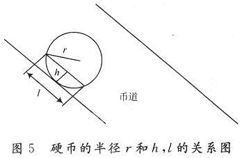 由此可计算出硬币通过币道时的加速度a。设光电传感器A距离币道底部的垂直距离为h;光电传感器A检测点扫过硬币的长度为l。图5为硬币的半径r和h,l的关系图。由图5可得如下公式: