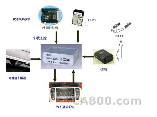 车载电子主要包括:控制单元(CPU)、显示单元、GPS卫星定位系统、GSM无线通信、防盗报警器、可视倒车雷达、车载娱乐系统、汽车状态显示等。