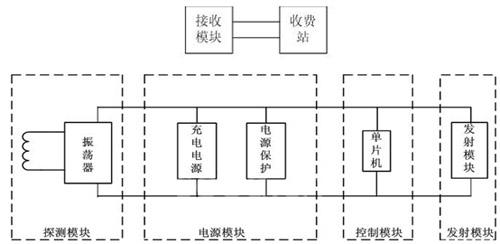 电源模块采用可充电电池为车辆传感器供电。电源模块通过电源管理芯片和控制模块进行管理。当电源管理芯片检测到电源的电压低落时,发射模块发射需要充电的信号,通知工作人员对车辆传感器的电池进行充电。当电池电量充满时,发射模块发射停止充电的信号,通知工作人员停止对车辆传感器的电池充电。电源保护电路对电源进行过度充电保护、过电流/短路保护和过放电保护。充电方案设计如图3所示。