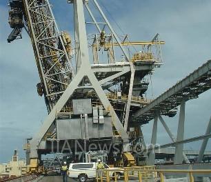 装船机每小时可装载7200吨货物,可沿停泊船只在200 m长的码头 (1/3) 轨道上行驶,整个登岸码头长3.8 km,是澳大利亚最长的煤炭码头。吊臂梭形头的作用范围可覆盖整个货舱宽度,实现均匀加载,加载时使用套筒式装煤槽,将灰尘产生量控制至最小。此装煤槽可在货舱360°范围内装载煤炭,确保完全、均匀的装载。