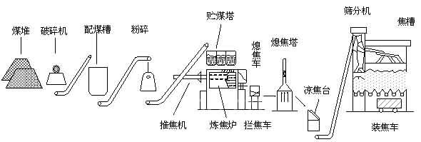 上图给出国内一般典型炼焦过程的工艺流程。