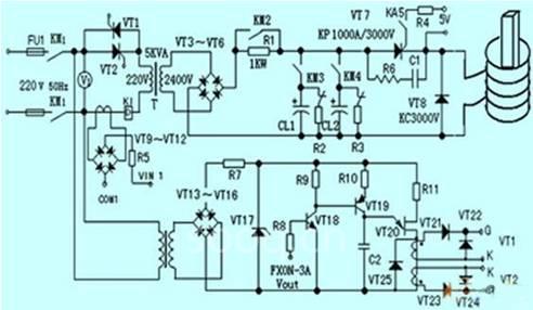 电容分级充电子程序就是考虑到电容在零状态充电时可能有很大的冲击电流,会损坏桥式整流电路和双向可控桂。存储电能电容分二级充电,开始接上限流电阻r1,过后用km2的触点短接,进行全压充电。