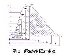 上述运行曲线是由控制系统预先设定好的,一般额定速度为1m/s的时候运行单条曲线,速度为1.5m/s的时候运行两条曲线。而由控制系统根据停车距离自动生成电梯运行曲线的控制方式一般称之为“距离控制”,其运行曲线如图2所示。
