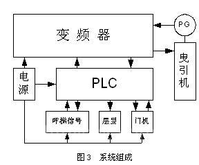 由图3可知,该系统主要由以下几部分组成:PLC、变频器、曳引机、门机等。PLC是控制系统的核心。[2]PLC根据输入的呼梯信号和目前电梯所处的位置自动确定电梯的运行方向及速度,变频器根据PLC的速度指令控制曳引电动机的转速,到达目的层后,自动平层、停车、开关门,在运行过程中输出电梯的楼层位置和运行方向,同时完成对呼梯信号的登记、保存和消除等工作。对电梯运行中的一些特殊情况(如急停、超载、冲顶、蹲底等)自动进行处理和报警。