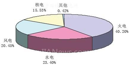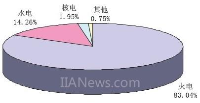 截至09 年底,全国全口径发电设备容量87407 万千瓦,同比增长10.23%。与08 年同期相比,发电机组结构不断优化,清洁能源快速发展。其中,火电设备容量占总容量的比重下降1.45 个百分点,水电、风电比重分别提高0.74、0.78 个百分点,核电没有新投产机组,所占比重略有下降。但是,从电源结构来看,由于09 年冬季以来主要流域来水严重偏枯,特别是西南地区持续干旱,导致水电占比略有下降;为缓解部分地区电力供应紧张局面,火电生产快速增长,占比略有上升;核电占比与08 年同期持平。2010 年1~2 月份,火电同比增长26.8%(去年同期下降7.8%);水电下降7.2%(去年同期增长25.5%)。