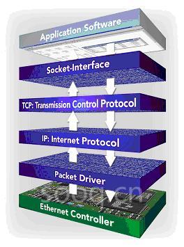 图二 TCP/IP栈图示,从硬件到应用软件