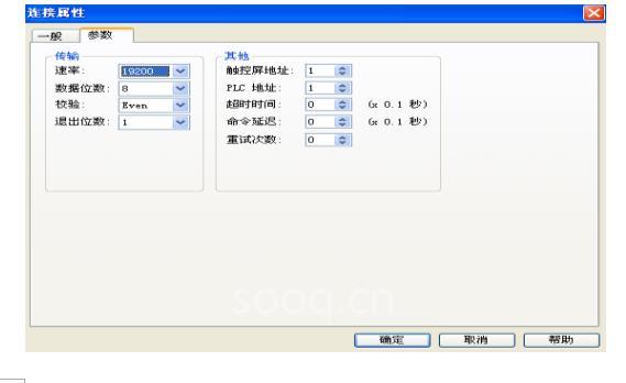 2、通讯参数的设定要与PLC的通讯参数一至如下图: