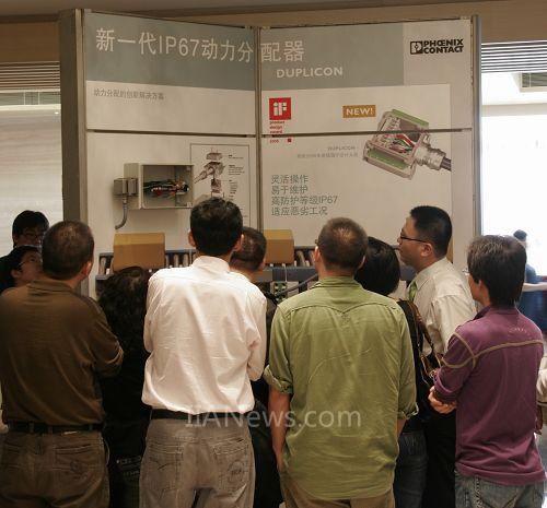 除了现场连线之外,与会议同步举办的Mini Fair亦让参会客户眼前一亮,菲尼克斯电气的最新产品和技术都一览无余地展示在客户眼前。在会议召开前后及茶歇时间,参会客户与我公司工程师们一边参观Mini Fair一边交流相关技术问题,济济一堂,言谈甚欢。