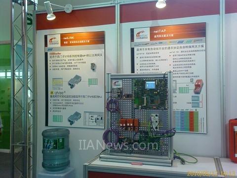 本次展会赫优讯中国一如继往的给广大自动化用户展示了德国赫优讯全系列最新产品,并在现场通过生动形象的动态演示,阐述赫优讯的产品和典型应用。其中一个Demo演示了赫优讯3个层次的产品,包括赫优讯PLC产品——netPLC、网关产品——NT100、嵌入式模块netIC产品。即通过赫优讯集Profibus通讯与控制于一体的netPLC(可通过STEP7、3S的CoDeSys或KW的ProConOS编程)作为控制器,通过NT100网关,将Profibus转换成CANopen协议,从而连接CANopen设备(DIL-32嵌入式通讯模块netIC)。