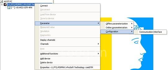 1. 选择 comDTM 图标,然后点击鼠标右键,打开快捷菜单。在快捷菜单中,选择“参数”,然后“配置”,然后“通信接口”。