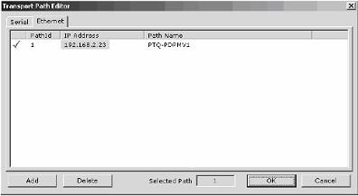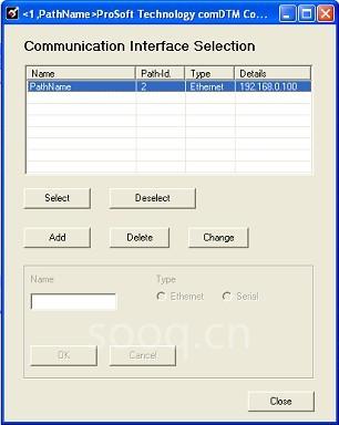 a) PTQ 用户:点击以太网选项卡,然后点击“增加”按钮。双击IP 地址区,键入你为 ProSoft 技术公司 PROFIBUS 主站模块设置的 IP 地址。加入一个描述性的“路径名称”。