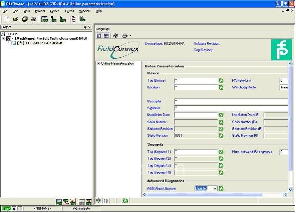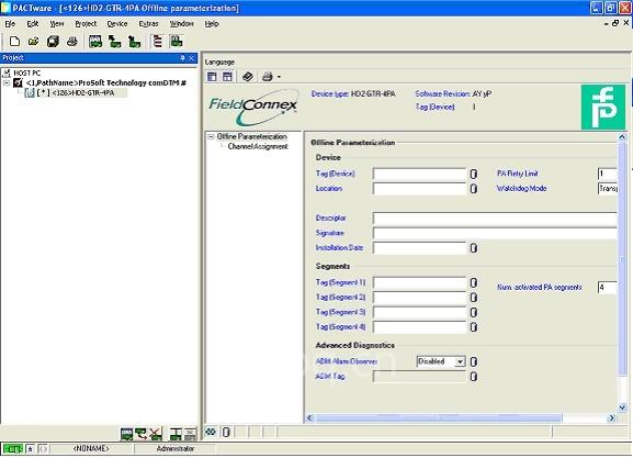 1. 启动 FDT 程序,然后按网络管理员登录。下面的过程是使用 PACTware 3.0 软件的情况。