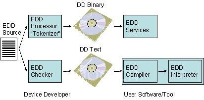 从技术上讲,设备开发者可以使用任何文本编辑器来编写EDD,但一个集成开发环境会带有集成的编辑器、表示器、和测试器,而且具有仿真功能,这使得开发更加容易。
