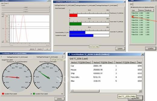 图9 软件用EDDL 对用户显示所有的设备功能(图中依次为:趋势、棒图、栅格、表头和表格)