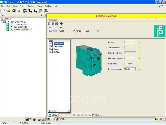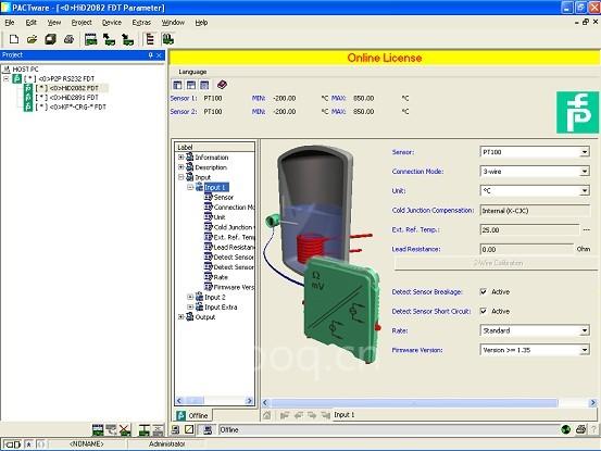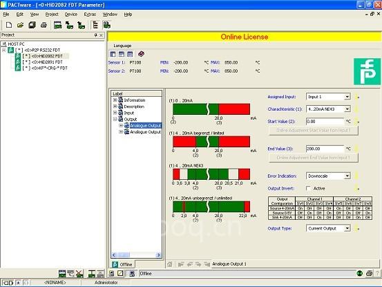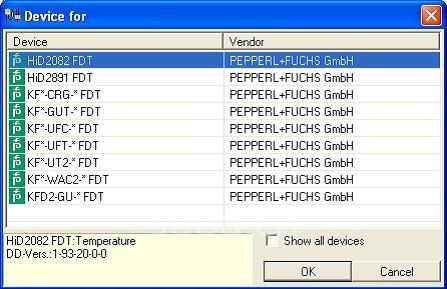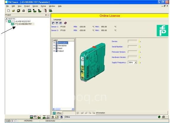 这个设备列表都是PEPPERL+FUCHS GmbH公司支持P2P RS232 FDT驱动器接口的设备模块,比如第一项:HiD2082 FDT就是一个温度模块。我们选择它并按OK按钮,就会出现下面的图形,