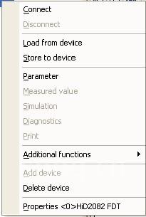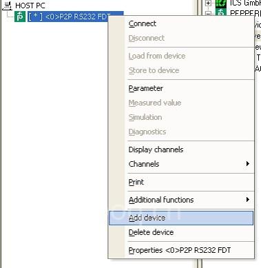 用鼠标点住刚建立的子目录[*]<0>P2P RS232 FDT,按右键,会出现以下菜单,