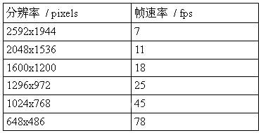 下表列出了在不同分辨率下该系列工业相机所能达到的最大帧速率: