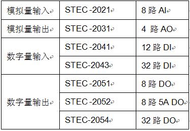 测控基站提供4个、8个或12个I/O槽,可带多种I/O模块,下表是部分I/O模块。