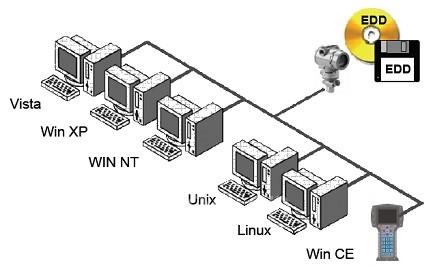 非常像 XML 和 HTML 网页,EDDL 技术是独立于操作系统的。它可以工作于不同的视窗版本,如 Windows、Windows CE、Linux、Palm 或其他操作系统。它还可以工作于不同的微处理器上,并且没有屏幕尺寸、彩色和单色的要求。因此,EDDL 是一种单一通用技术的解决方案,可用于手持通信器、配置软件和智能设备管理软件--做为资产管理软件包的一部分,甚至能够嵌入至设备之中。EDDL 免除了附加解决方案的需求。不同的应用以不同的方法使用 EDDL。智能设备管理软件可以使用EDDL的所有特性,比如:性能分析;操作员流程可视化软件可以使用EDDL,比如:显示流程变量; 配置工具可以使用EDDL,比如:建立一个功能块的控制策略。这些不同的任务可以由不同的人员或使用不同的工具来完成。