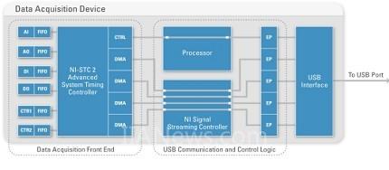 图2. 采用基于USB的NI信号流的DAQ设备传输构架